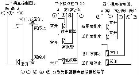 2)、二個(gè)報(bào)警信號:接點(diǎn)為常開,位置出廠設(shè)置在最高和最低位置;三個(gè)報(bào)警信號:均為常開,高2設(shè)在 50%,四個(gè)報(bào)警信號:高1高2為常開、低11低12為常閉,高2設(shè)在85%、低12設(shè)在15%,接線端見下圖,若有不同要求請說明,報(bào)警位置用戶也可自行調(diào)整。